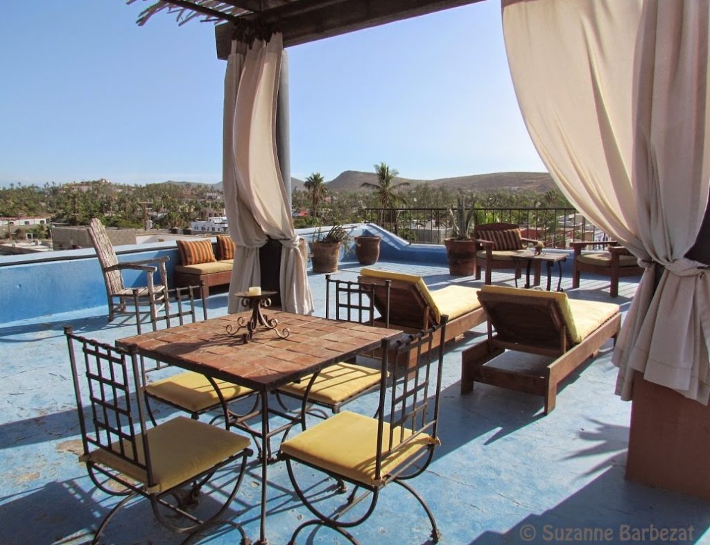 Besides the artwork that you’ll find enlivening spaces throughout the hotel, there is a small art gallery at the Hotel California. When I visited there was an exhibit of paintings by artist Gabriel Rodriguez who hails from La Paz and is not only an accomplished visual artist but has also won awards for his literary creations.